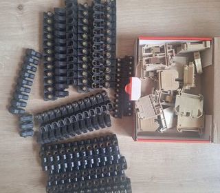 Particulier vend un lot de matériel neuf de jonctions électriques comprenant : 7 barrettes de 12 unités Hypo Legrand 6mm2 34266, 3 barrettes de 12 unités Hypo Legrand 4mm2, 2 barre