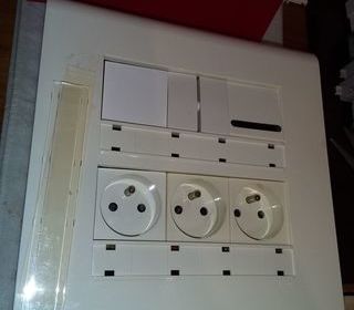 MATERIEL QUASI NEUF VISITE POSSIBLE BOITIER LEGRAND pour MOSAIC 45 220 X 220 X 60mm 1 double va et vient 1 simple interrupteur 1 bouton poussoir 3 pc 2p+t