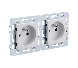 MATERIEL NEUF VISITE POSSIBLE Double prise à encastrer 2P+T 16A cache blanc + support métal BRICELEC VENDU SANS ENJOLIVEUR