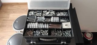 Le casier pour la face Recto est composé de : -Visseries jaune plusieurs tailles, Taqués fond de meuble, Chevilles bois de meuble, Visseries et chevilles diverses, Chevilles a frap