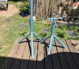 Modèle pied de poule à coulisse. Hauteur mini 51, maxi 86.5 cm. Largeur aux pieds 46 cm. Largeur support chevron 20.5 cm. A retirer à Oullins