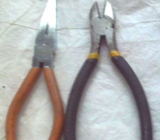 1 - pince coupante en acier allié, gravure de la marque Stanley illisible, valeur neuve : 60 €, vendu 12 € 2 - pince coupante à bec fin avec poignées antidérapantes, en acier au c