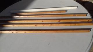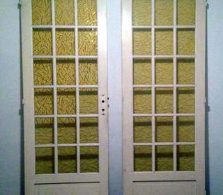 4 façades de meubles en châtaignier (peuvent être repeintes) 1) largeur 0.60 ; hauteur 1.35 2) largeur 0.40 ; hauteur 1.50 3) largeur 0.65 ; hauteur 0.70 4) largeur 0.60 ; ha