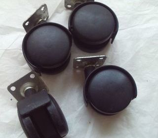 Lot de 4 roulettes jumelées pivotantes sans frein, diamètre de la roue 5 cm, largeur 4 cm, matière nylon, platine 3,8 x 3,8 cm, charge max 40 kg Pour meubles sur sols intérieurs,