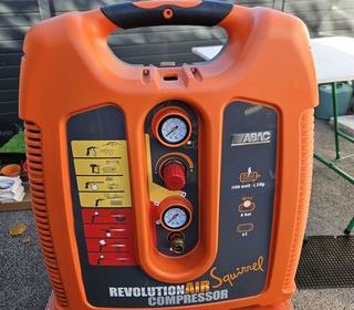 Compresseur d'air ABAC- MECAFER Squirrel Révolutionnaire 1,5HP ,1cylindre sans huile, entraînement coaxial, cuve de 6Litres intégrée à la carrosserie, portatif, poignée ergonom