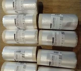 Vend lot de 9 rouleaux de bache avec bande adhésive, neuf 2700 mm X 25 M. idéal pour travaux peinture, protection, carrosserie... Pas d'envoie. prix a voir.