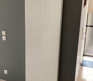 l'installation comprend : 3 radiateurs muraux verticaux de 1800 x 600 x 80 5 radiateurs muraux horizontaux de 600 x 600 x 100 1 sèche serviette 1250 x 500 1 chaudière gaz SAUNI