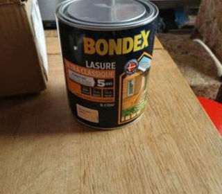 Bonjour, Je vend double utilisation un pot de 1 litres lasure incolore BONDEX neuf, jamais utilisé. Les nettoyage des outils à l'eau. Venir chercher sur place. Le prix est 16