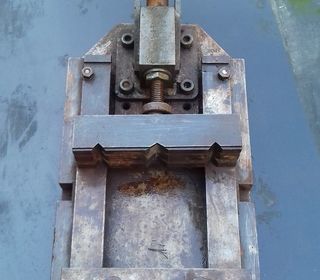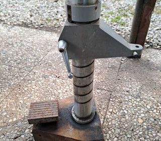 Support perceuse a colonne en Inox et fonte, du très lourd ! Hauteur 45 cm Largueur 28 cm Diamètre Inox 5,5 cm