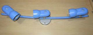 véritable applique "vintage" de plafond en métal aluminium peint arrondi avec trois spots à vis E14 - R50- 40 watt, orientables, support plastique gris, couleur bleue, de la marqu