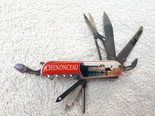 Excellent état peu servi comme neuf 9 Fonctions : tire bouchon, décapsuleur, ouvre boite, mini scie, couteau, tourne vis cruciforme, ciseau, lime ongles et cure ongles Possibil
