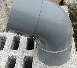 coude en pvc gris de marque Fitt / Interplast pour évacuation des eaux usées et pluviales, diamètre (100) & angle (67°) & courbe (30°) type de raccordement: femelle / femelle n