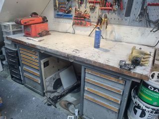 ETABLIE AVEC TIROIRS METALLIQUE DEMONTABLE PLATEAU BOIS MULTIPLIS DE 1700X 700 EP 28 BLOCS 11 TIROIRS SUR GLISSIERES