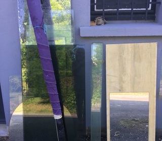 Plaque de verre 73cm x 155cm (retiré) autre mesure /divers épaisseur 2€ la plaque