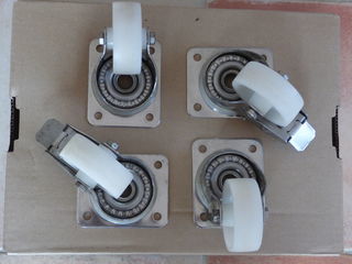 Vends roulettes de transport de diamètre 75 mm en très bon état. Corps de roues en polypropylène, largeur 30mm. Base de fixation : 105 mm x 85 mm. Trous de fixation : diamètre 8
