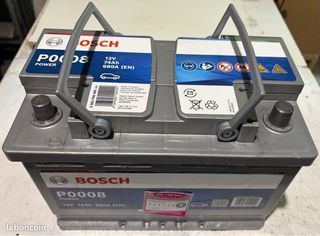 Je vends cette batterie de démarrage neuve de la marque Bosch. - Type de produit : Batterie de démarrage - Marque : Bosch - Référence : P0008 - Capacité : 74Ah 680A (EN) - Ten