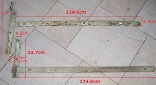 ANCIENNE PAIRE DE PENTURE FER FORGÉE PORTE XIX ème Ancienne paire de ferrure pour porte de grange ou autre. - Fer forgé. - Fin 19ème siècle. - Voir dimensions sur photo. - A