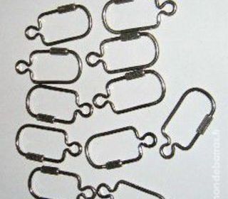Anneau porte clés ou porte médaille en acier nickelé neuf de 45x20mm assorti d'un filetage pour serrer et fermer la boucle se vend à l'unité:0,50€ ou par 10 frais de port