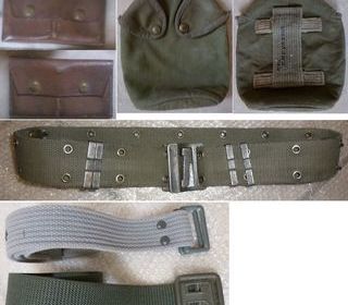- 1 étui en cuir porte lentilles (il me semble) - 1 étui pour gourde - des ceintures plus ou moins anciennes - diverses médailles, épinglettes - 1 boite à cartouche vide, en m