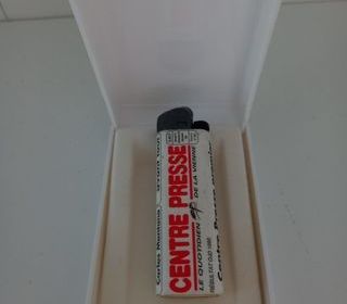 BRIQUET CRICKET CENTRE PRESSE // TRES BON ETAT // PLASTIQUE // (briquet vide pour collection)