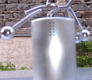 Briquet Felter Ibelo très rare, ayant en suspension une mini-statuette : Cheval + Cavalier. Tout en inox. En parfait état général. Dim. : H. 14 cm - diam. 4.5 cm. Si expéditi