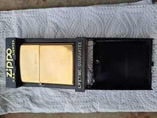 Briquet Zippo Solid Brass couleur Or extrêmement brillant au soleil Neuf, jamais servi, dans sa boite d'origine avec son numéro et son certificat d'authentification au verso d