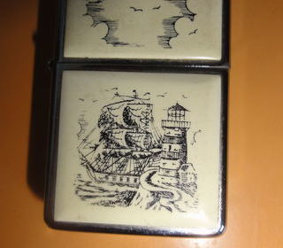 briquet tempête Zippo - véritable résine ivoire - slim chromé - décor marin - comme neuf 15 euros