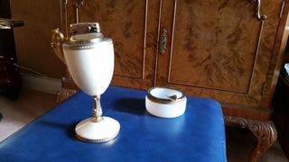Ensemble briquet et cendrier Blancs et métal doré A prendre sur place