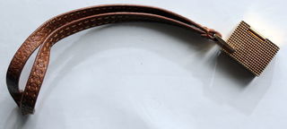Porteclef briquet miniature décoratif en métal plaqué or DUPONT sangle en cuir marron le briquet est non fonctionnel 2.5 cm x 3.3 cm poids 80 grs quelques traces d'usage Envo