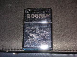 2 briquet Zippo 1 gravé BOSNIA SFOR avec un aigle gravé et un hélicoptére 1 gravé armée de terre avec son logo