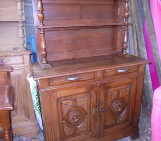 exceptionnel buffet Saint-Hubert bois massif 2 portes 2 tiroirs 3 éléments dissociables (frise ouvragée / colonnettes / buffet bas) L 110 x p 42 x h 185 livraison possible contr