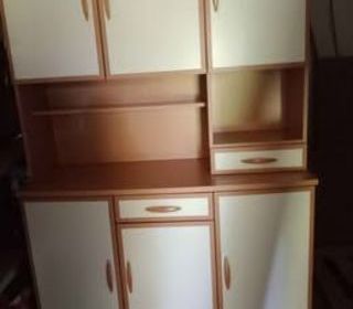 Je cède un vaisselier en bois massif en parfait état, comme neuf. Il est en 2 parties. Les 2 portes coulissantes ont un beau vitrage de style aux bords biseautés. Ses dimensions