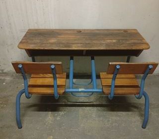 PUPITRE ÉCOLIERS POUR DEUX ENFANTS TRÈS BON ÉTAT SIÈGES CONFORTABLES ET BUREAU ROBUSTE TRÈS BEAU MEUBLE TRÈS PRATIQUE POUR FAIRE LES DEVOIRS SCOLAIRES POUR ENFANTS EN PRIMAIRE