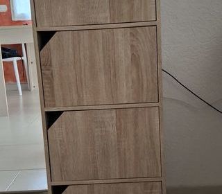 Armoire pour chambre ou bureau couleur : gris et bois clair 4 modules, dans l'ordre 45 cm - 22 cm - 45 cm - 45 cm- longueur totale 157 cm Hauteur 150