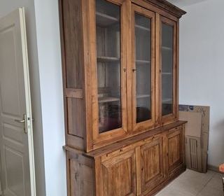 Bibliothèque massif trois portes pleines en bas et trois portes vitrées en haut en deux partie excellent etat dimension Meuble Bas: Long: 1,87 H: 0,76 P: 46,5 Meuble Haut : Lo