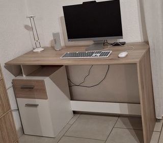 je cède un bureau d' angle neuf avec chaise réglable en hauteur. les dimensions du plateau sont : 100×100 cm hauteur 75 cm. il peut être démonté pour son transport.