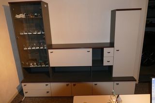 solide bureau avec caisson à roulettes (tiroir et dossiers suspendus )