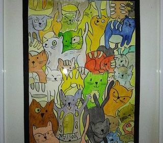 petites créations peintures "aquarelles" Chat et ourson sur papier aquarelle 21*29.7cm Peintures en 1 seul exemplaire unique - (peut être refait mais jamais à l'identique) tail