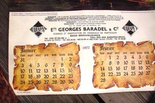 Ancien calendrier de 1977 de l' entreprise Georges BARADEL à Brouvelieures scieries et fabrication de panneaux Très bon état. ?........15€ Tel :