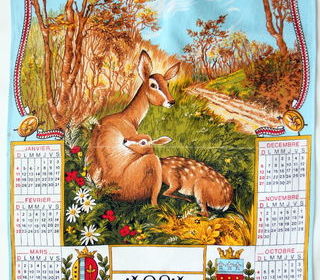 Torchon calendrier 1981 coton 63 x 43 cm petite trace de pliure au milieu Envoi possible RMP métro Corentin Celton