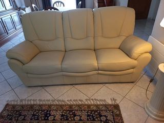 Très beau canapé 3 places,cuir couleur ivoire,très peu servi. Super occasion.