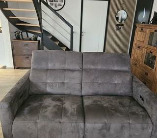 Canapé de relaxation électrique gris anthracite tissu aspect daim nubuck, encore sous garantie jusqu'à avril 2026. Commande sur accoudoir de chaque côté avec également port usb. T