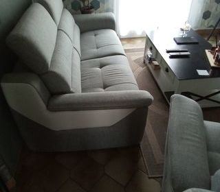 Vend canapé tissu L212 x H 88 x P103 et fauteuil L115 x H 88 x P103. Têtes relevables. Bon état. À prendre à Blenod les pont à mousson.