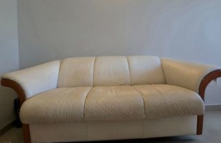 Canapé stressless cuir blanc/crème , bon etat . Dimensions: long 2,20 - larg 0,90 - haut 0,76 Assise 1,66 x 0,55 . A retirer sur place.