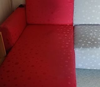 Canapé avec méridienne rouge et gris