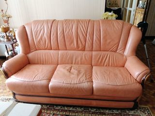 À vendre canapé fixe et 2 fauteuils imitation cuir couleur saumon