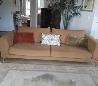 Vend canapé tissu fargo frisco camel 2.5x0.99x0.84m Pied acier brossé Comme neuf Vend cause déménagement
