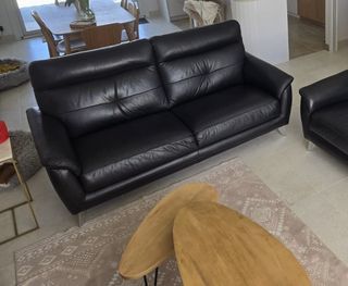 Canapé non convertible 3 places modèle Mirabel (Monsieur Meuble) Très bon état Dimensions L 195cm x H 98cm x P 98cm Cuir fleur corrigée vachette noir Structure hêtre massif Sus