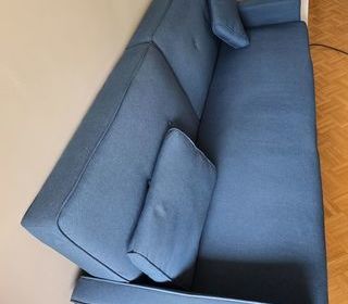 Je vends ce canapé convertible style scandinave en tissu bleu. Dimensions du couchage : 114 x 186 cm Bon état à € venir récupérer, Paris 14, quartier Alésia N'hésitez pas à me co