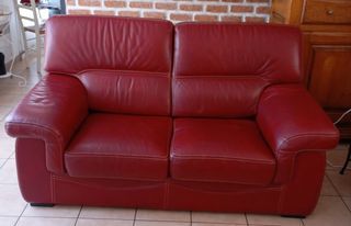Canapé cuir rouge 2 places fixe. Largeur 160 cm, assise 56 cm, dossier 60 cm. A récupérer à Méry sur Oise 95540